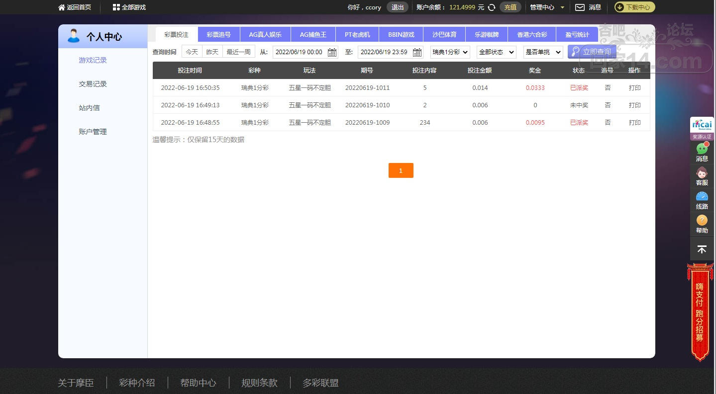 1分彩赚了一点