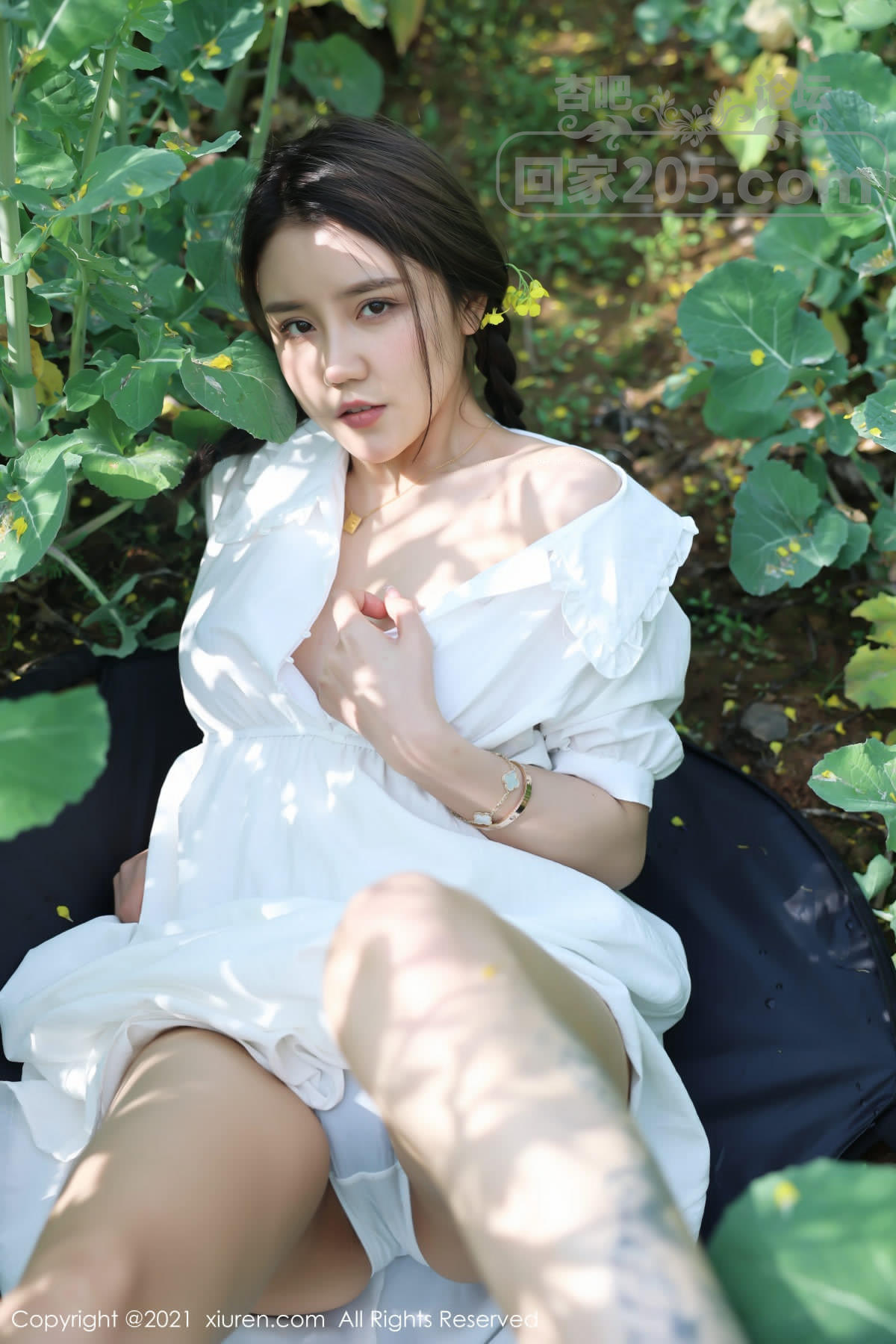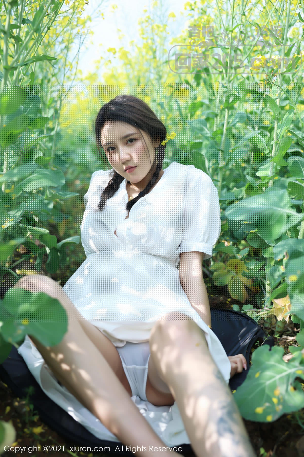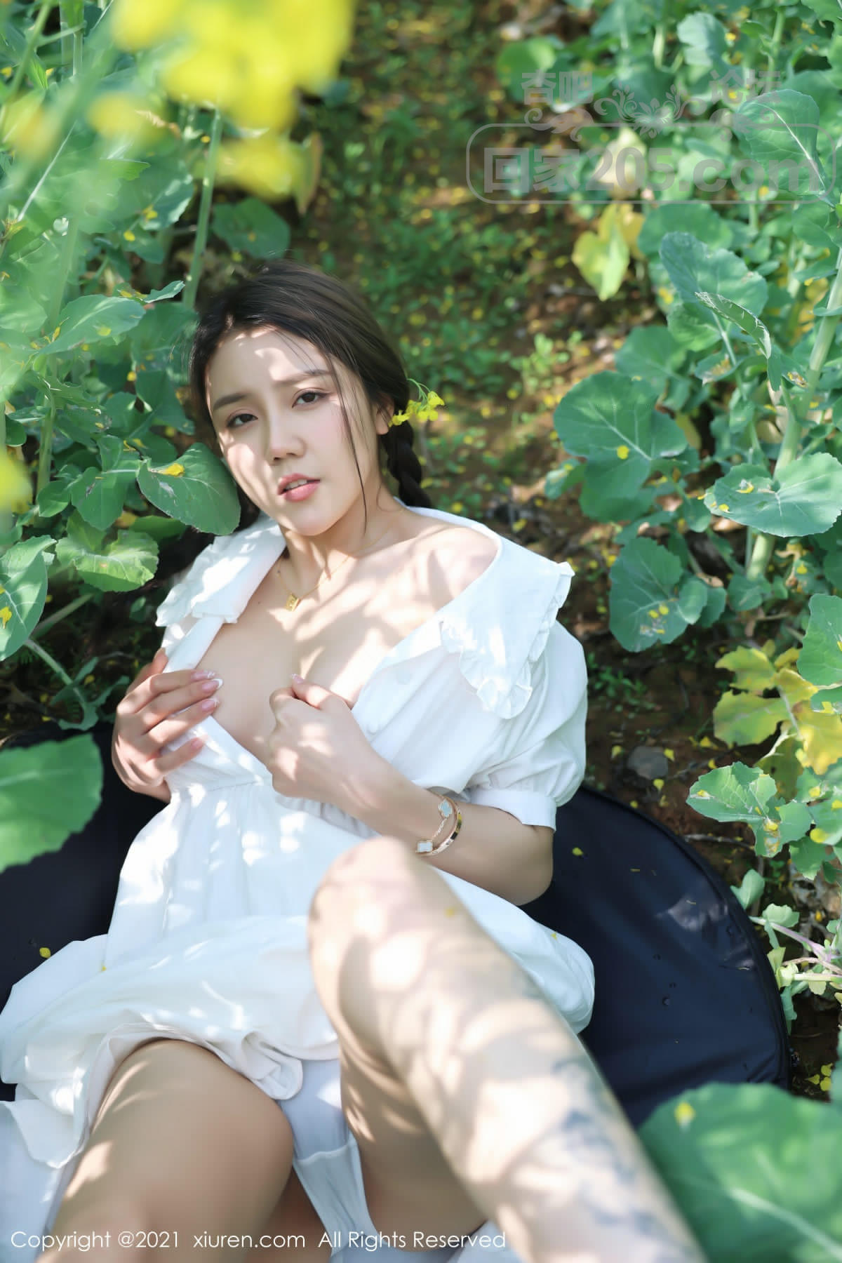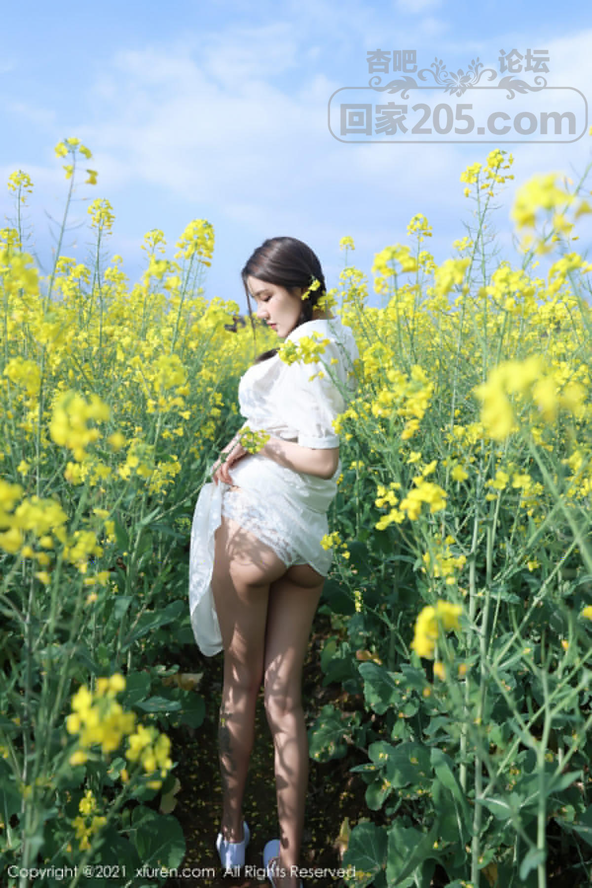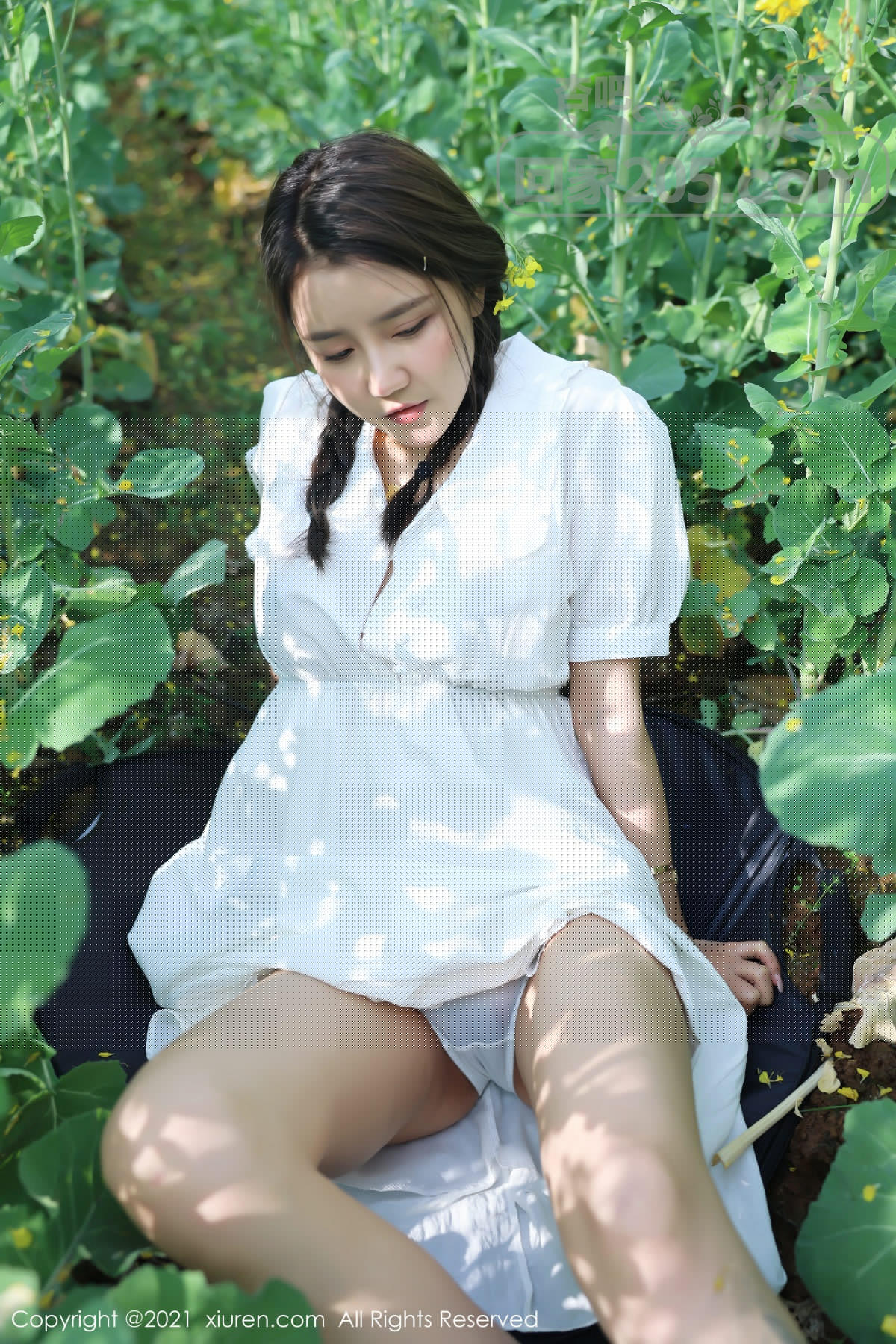 [美腿翘臀] 嫩模夏西CiCi花丛外拍主题洁白短裙露蕾丝内裤秀翘臀诱惑写真【49P】 |