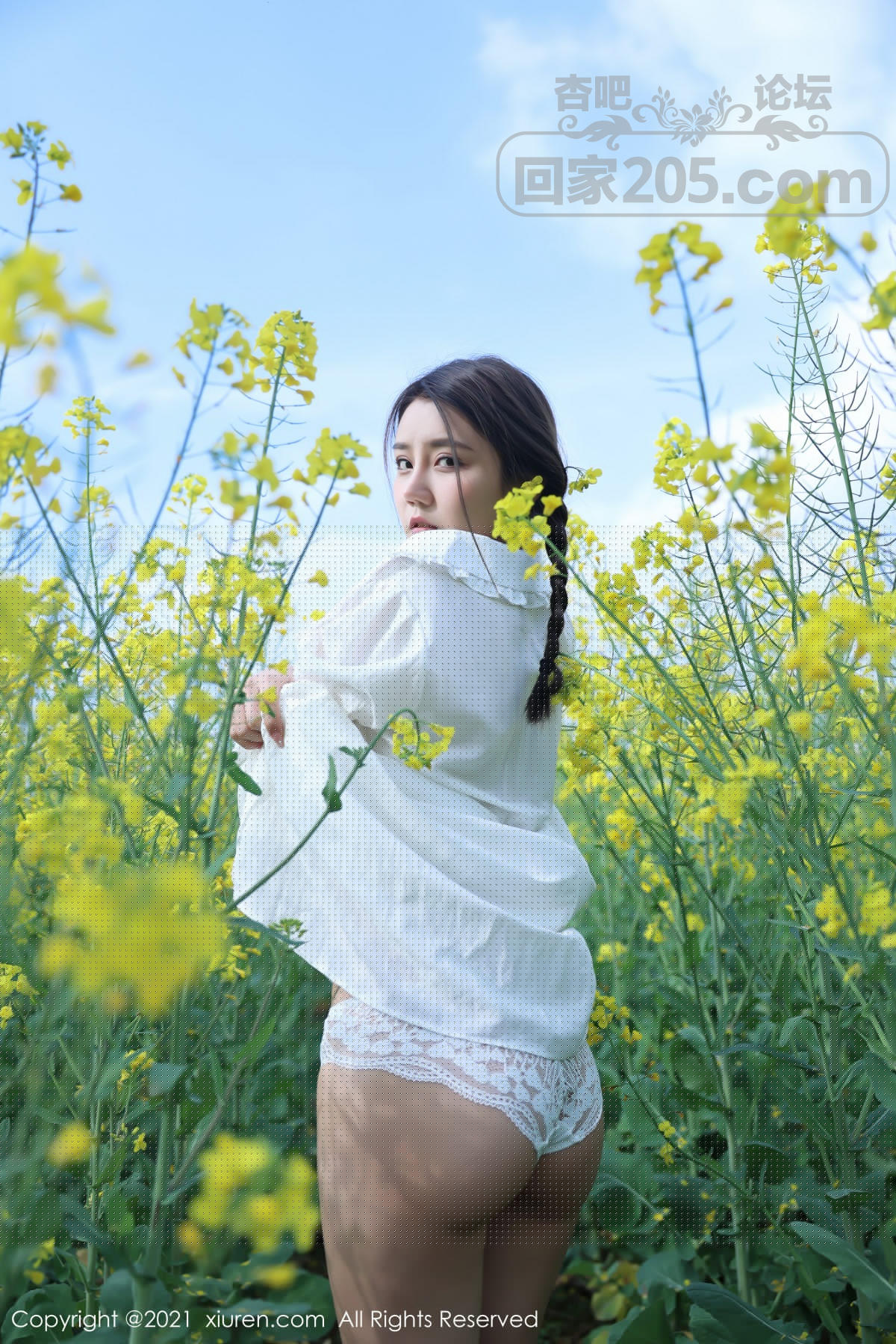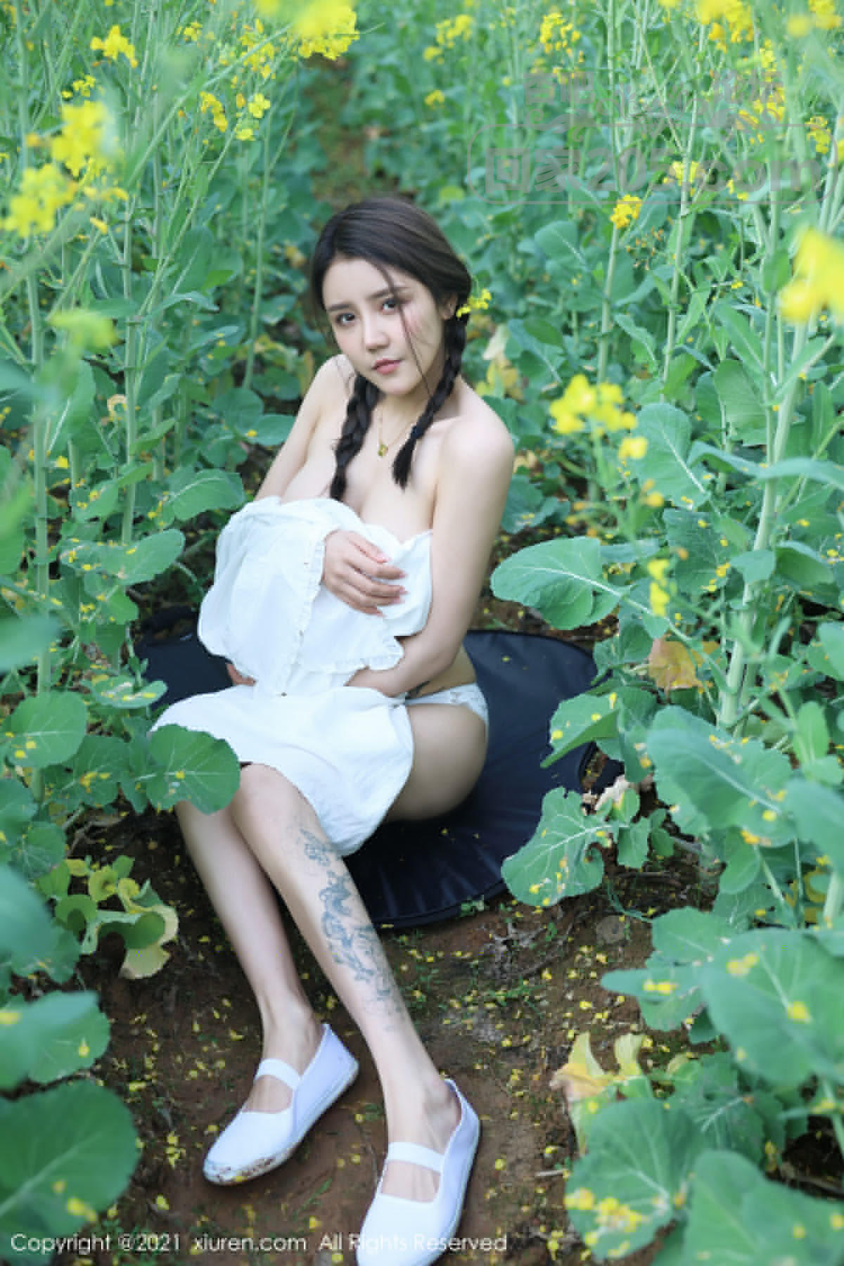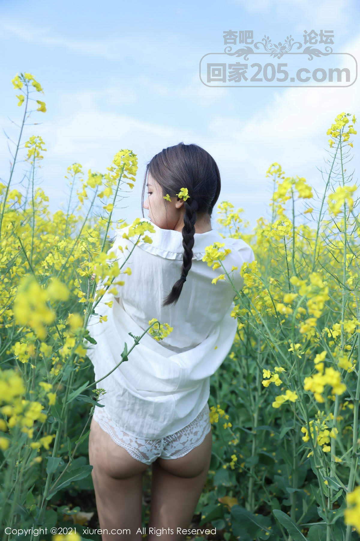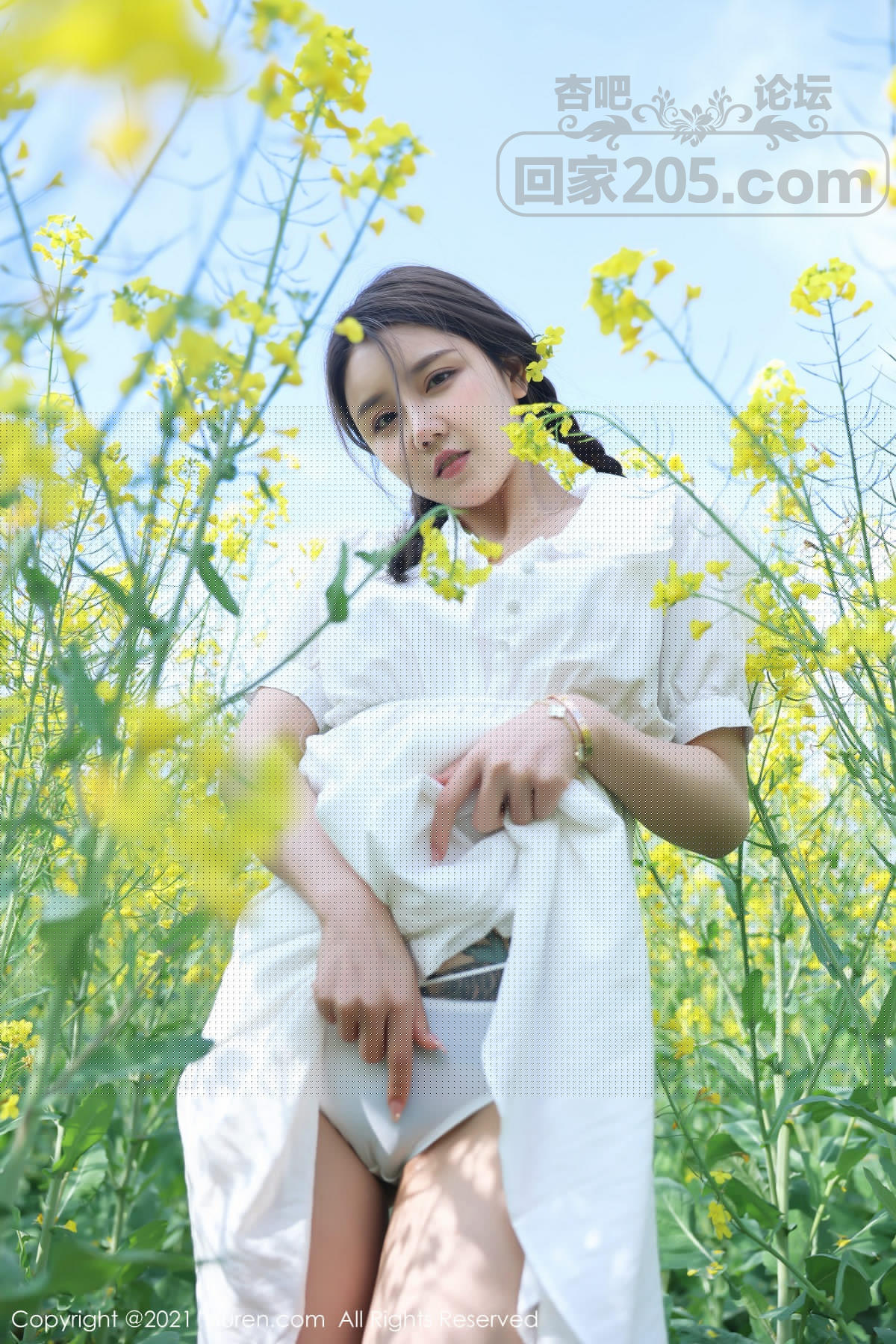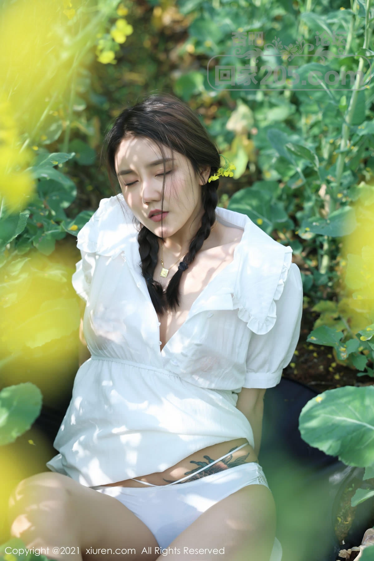 [美腿翘臀] 嫩模夏西CiCi花丛外拍主题洁白短裙露蕾丝内裤秀翘臀诱惑写真【49P】 |