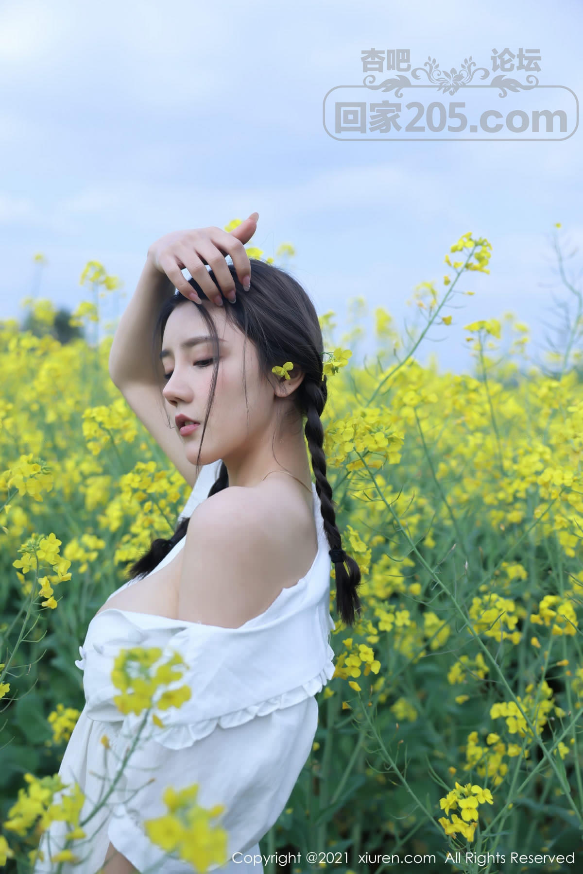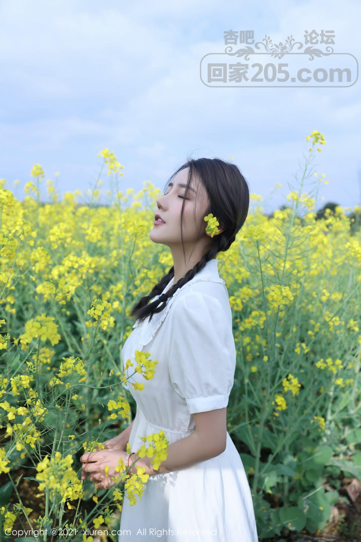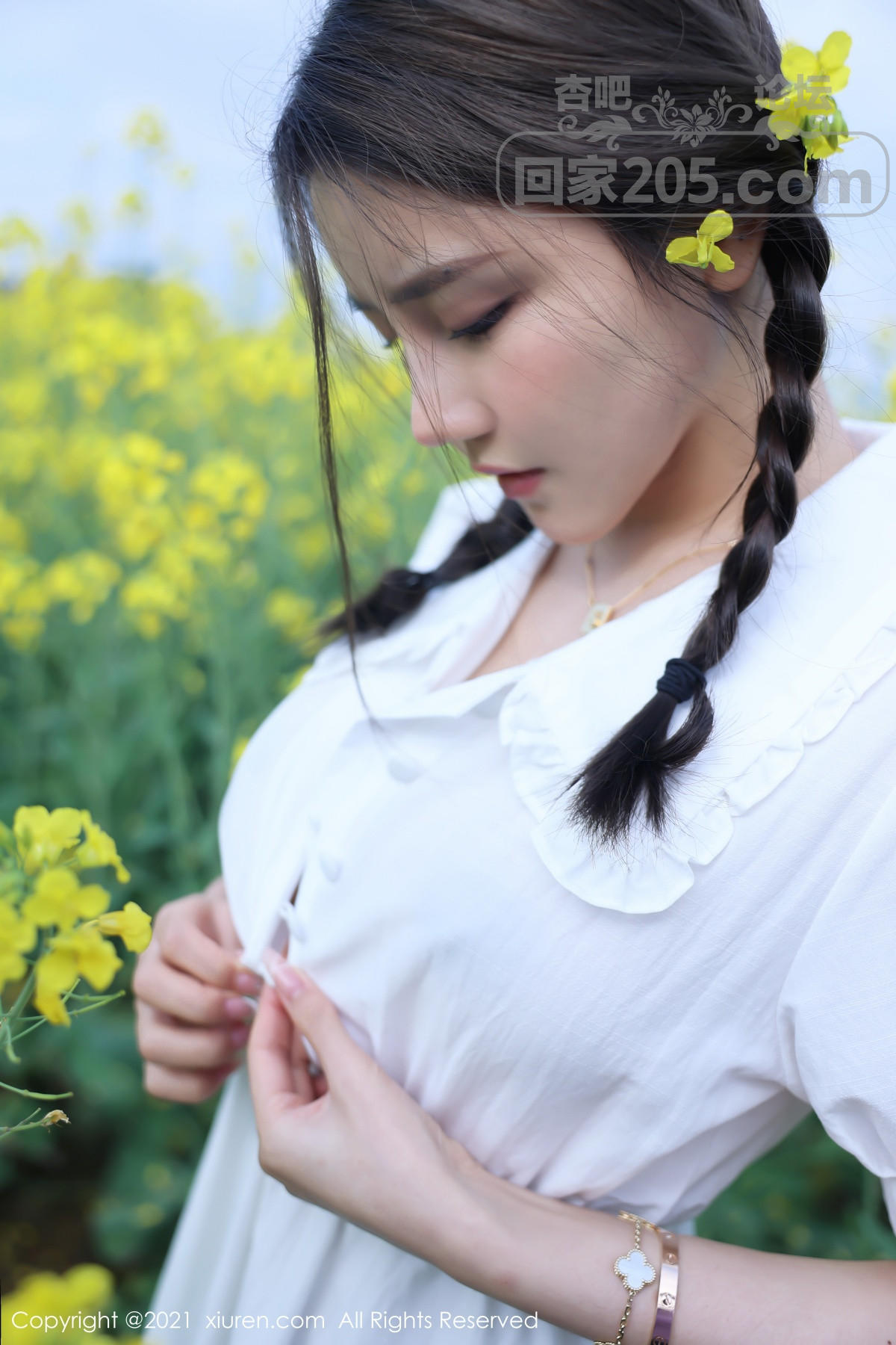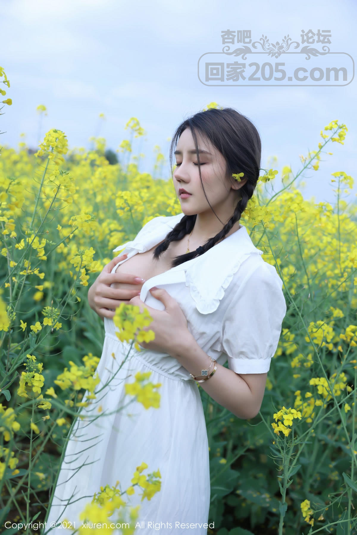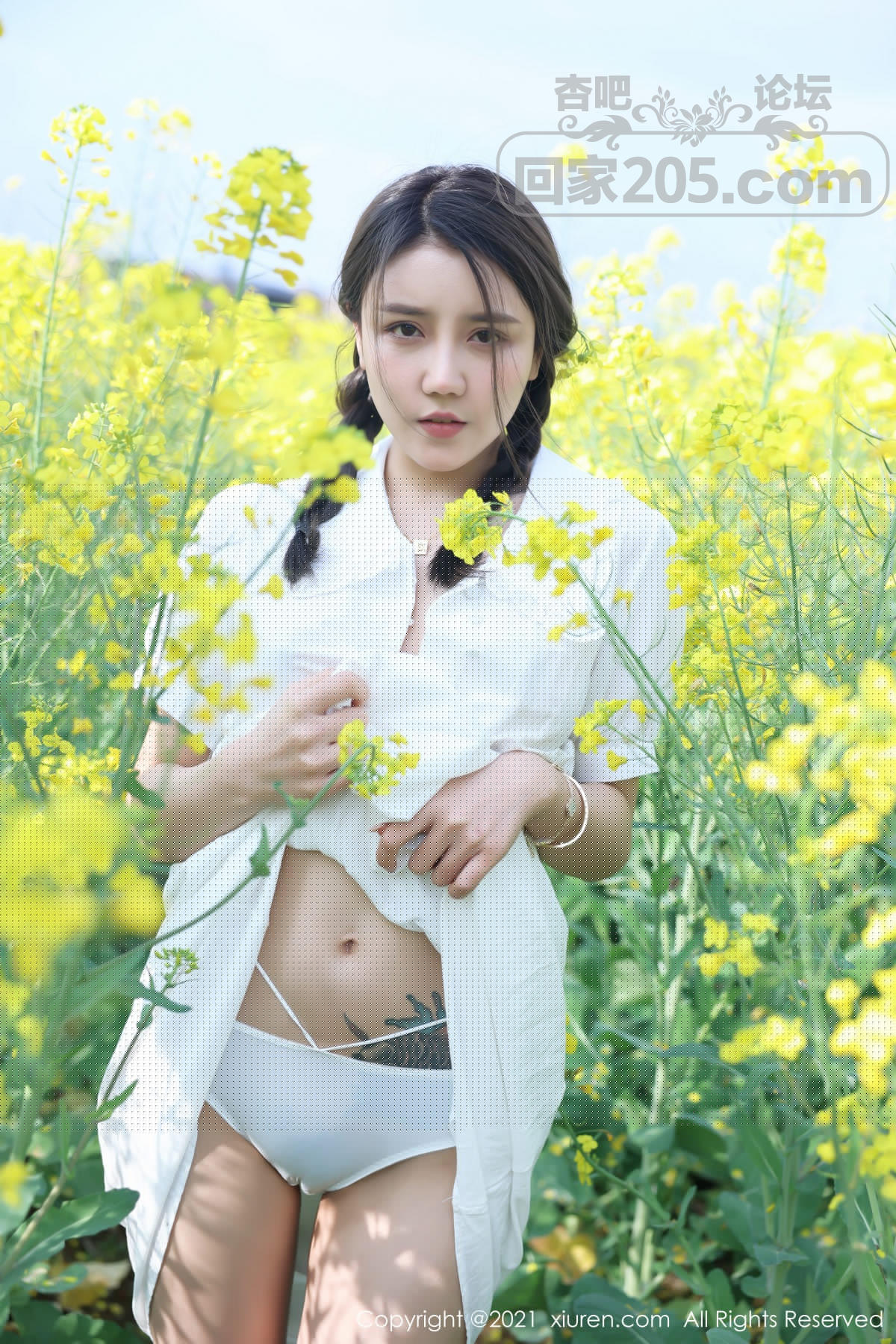 [美腿翘臀] 嫩模夏西CiCi花丛外拍主题洁白短裙露蕾丝内裤秀翘臀诱惑写真【49P】 |