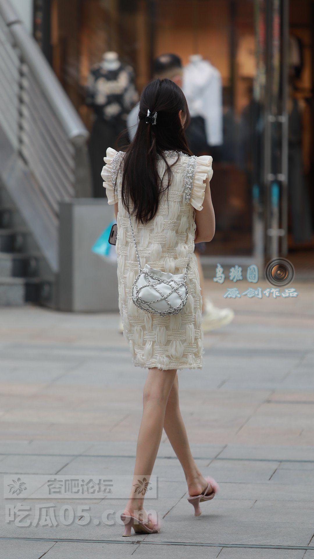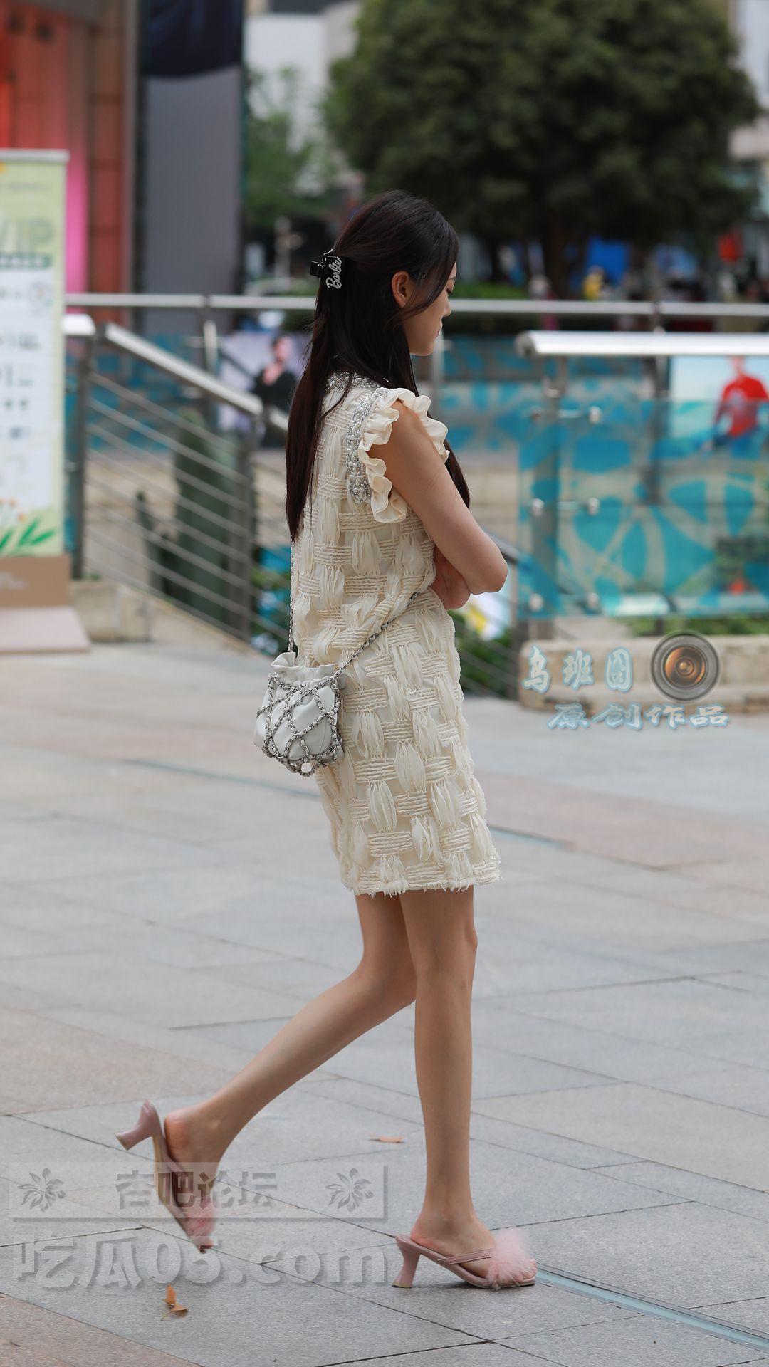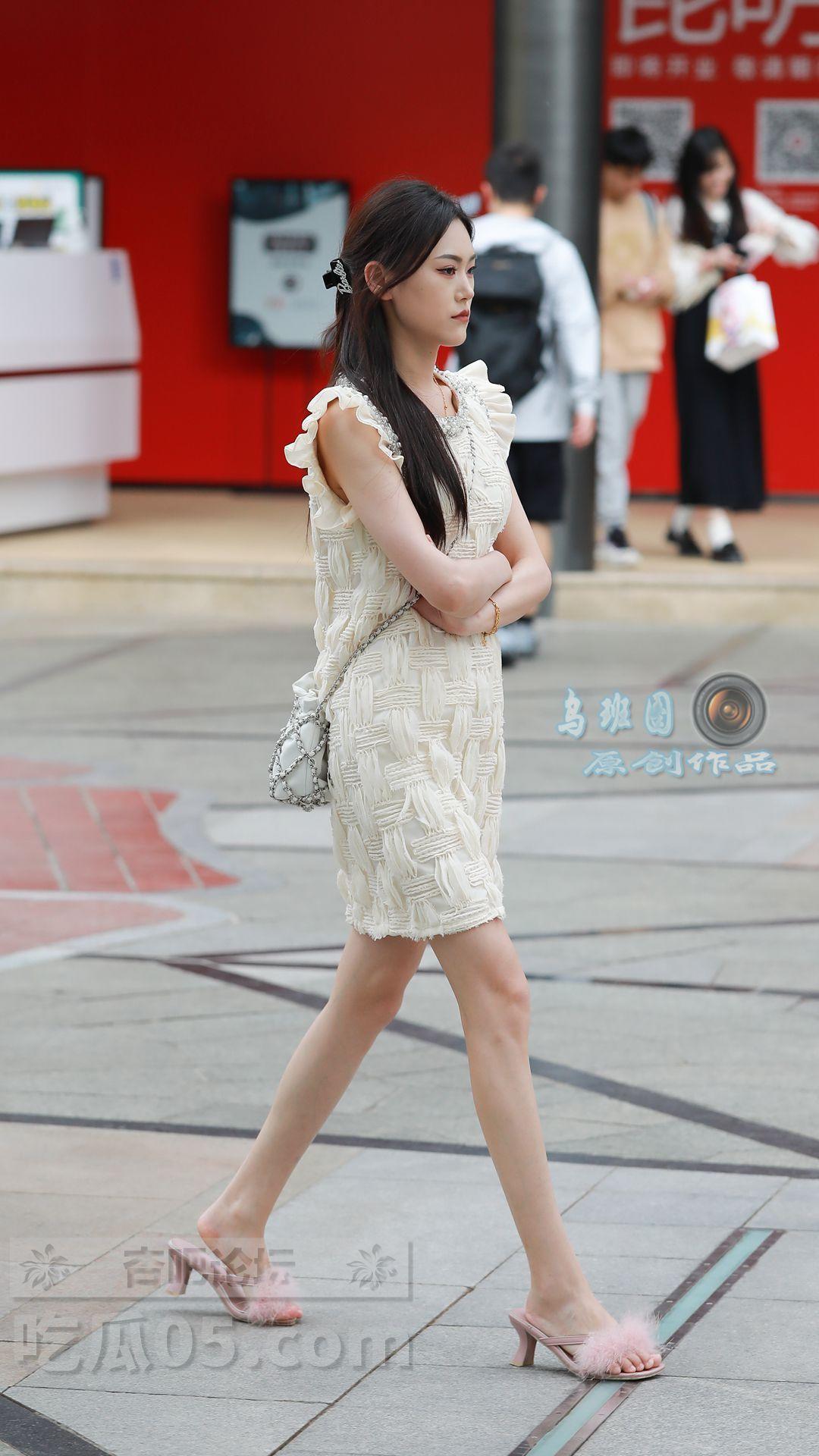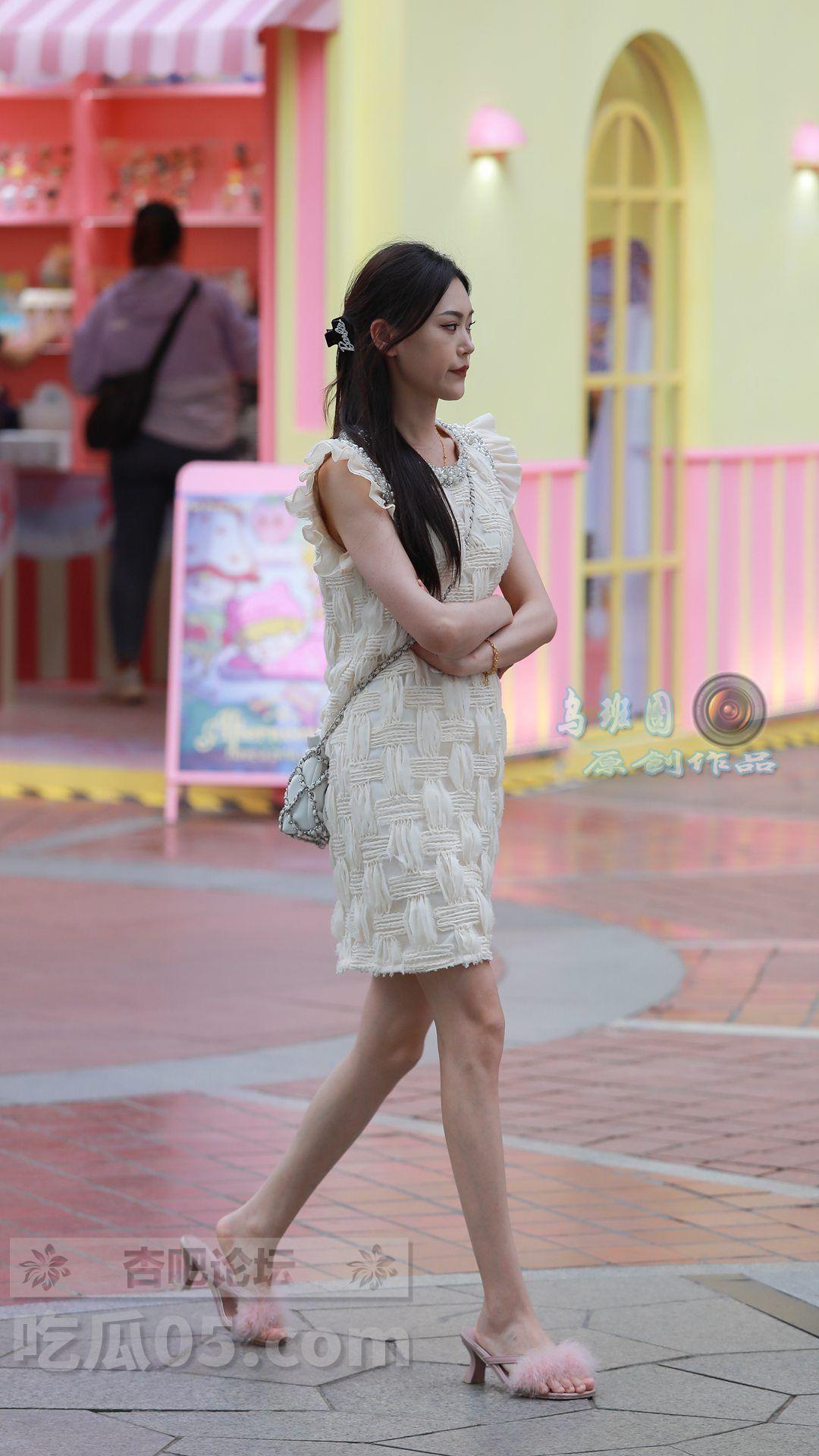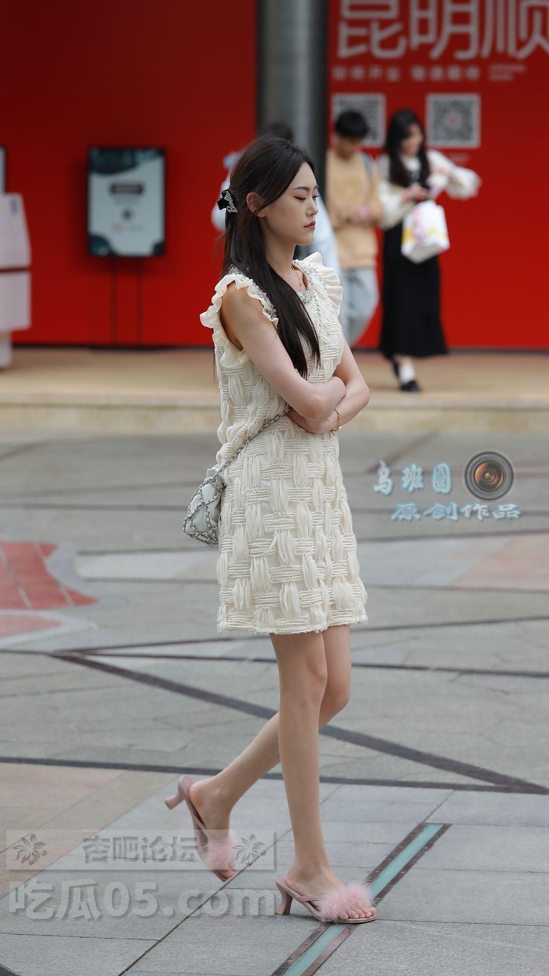 连衣裙+绒毛凉拖鞋,美女双手环抱胸前,脸上带着些许忧愁,身材高挑、美腿颀长【29P】