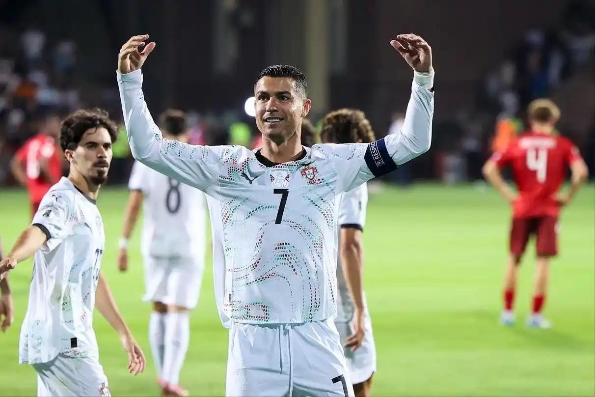 球迷强行来到C罗身边求合影,C罗很不开心,用右手大力将其推开