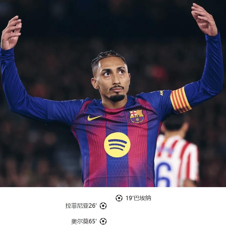 [|心得交流] 战报:巴萨3-1马竞,拉菲、奥尔莫破门,莱万失点 |