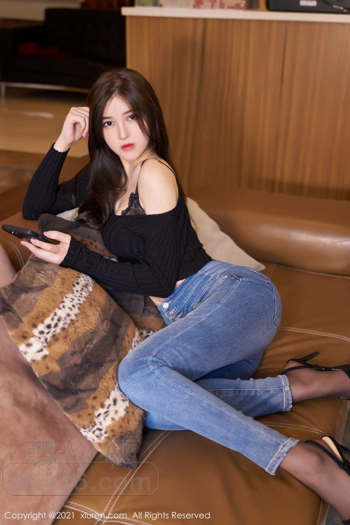 [美腿翘臀] 嫩模韩静安私房脱牛仔裤露黑色蕾丝内衣蕾丝吊袜极致诱惑写真【50P】 |