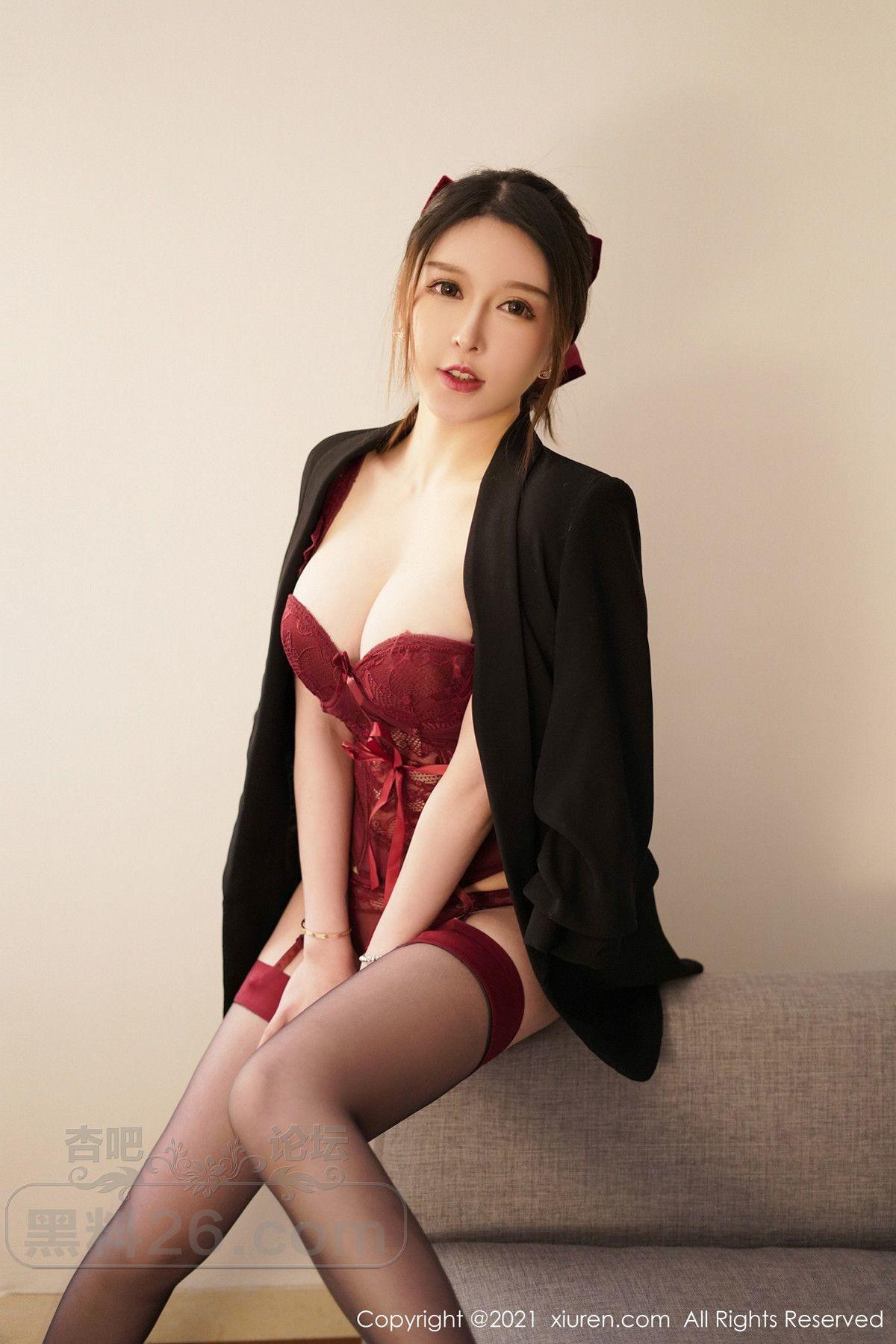 [美腿翘臀] 嫩模玉兔miki红色情趣内衣主题私房黑丝吊袜秀完美身材诱惑写真【50P】 |