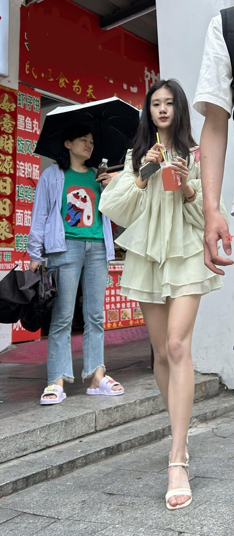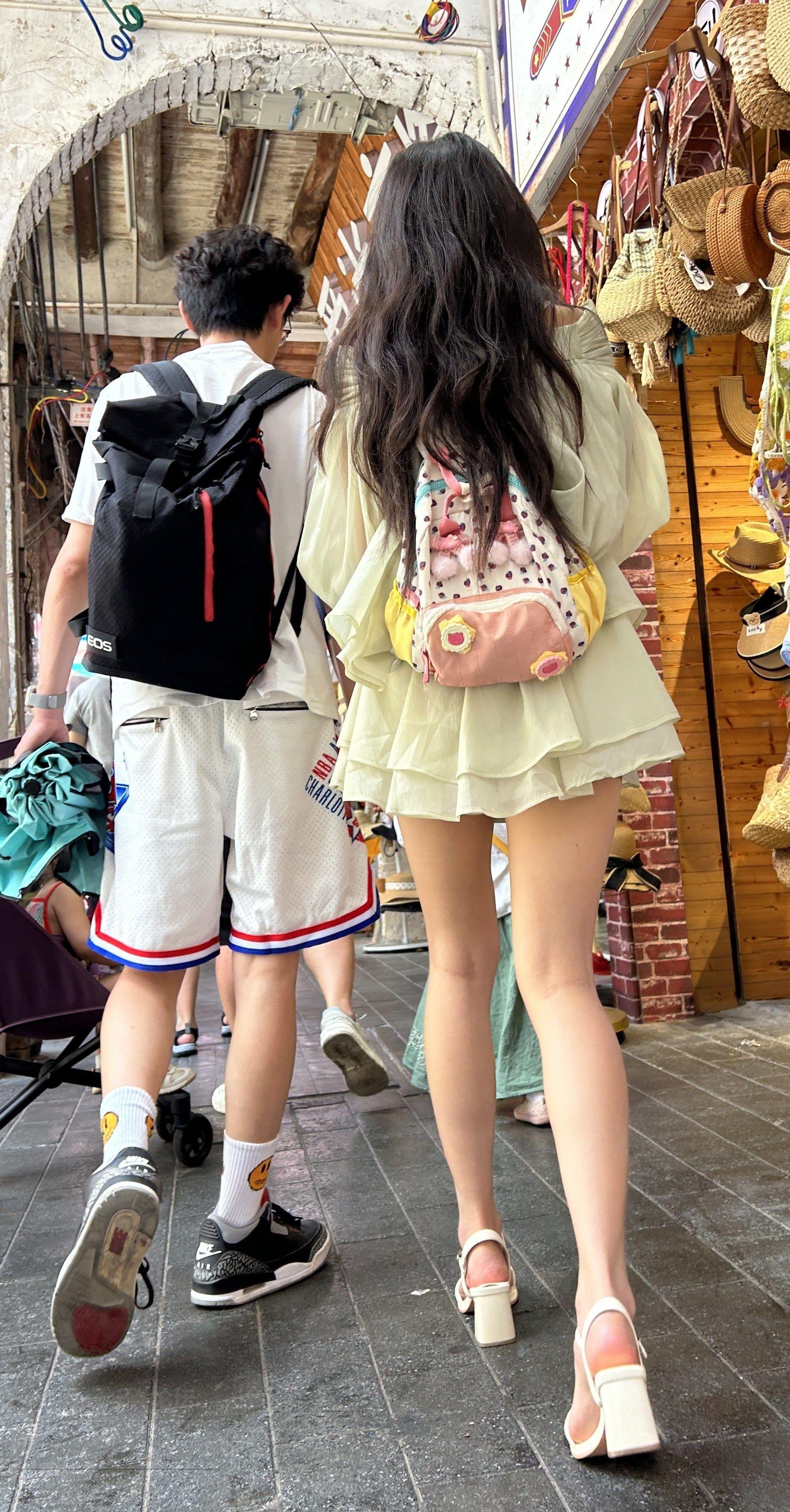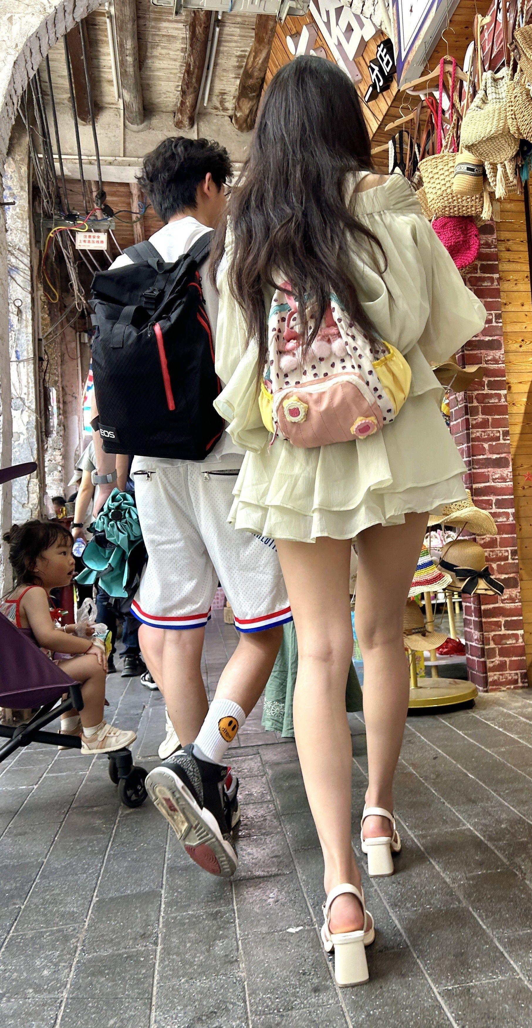 [街拍] 浅色薄纱短裙长发妹子和男友步行街闲逛邻家女孩的感觉【10P】 |