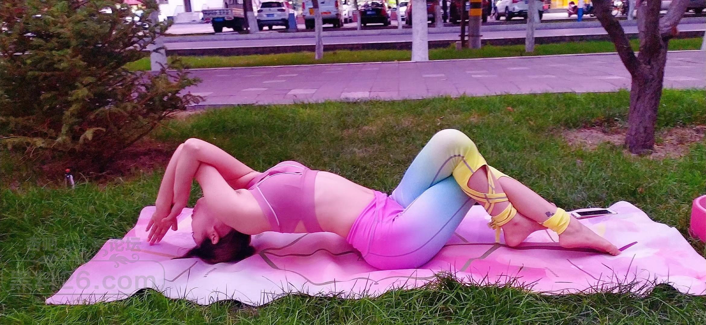 加了个在街上草地上做瑜伽的美女的微信,真棒棒【17P】