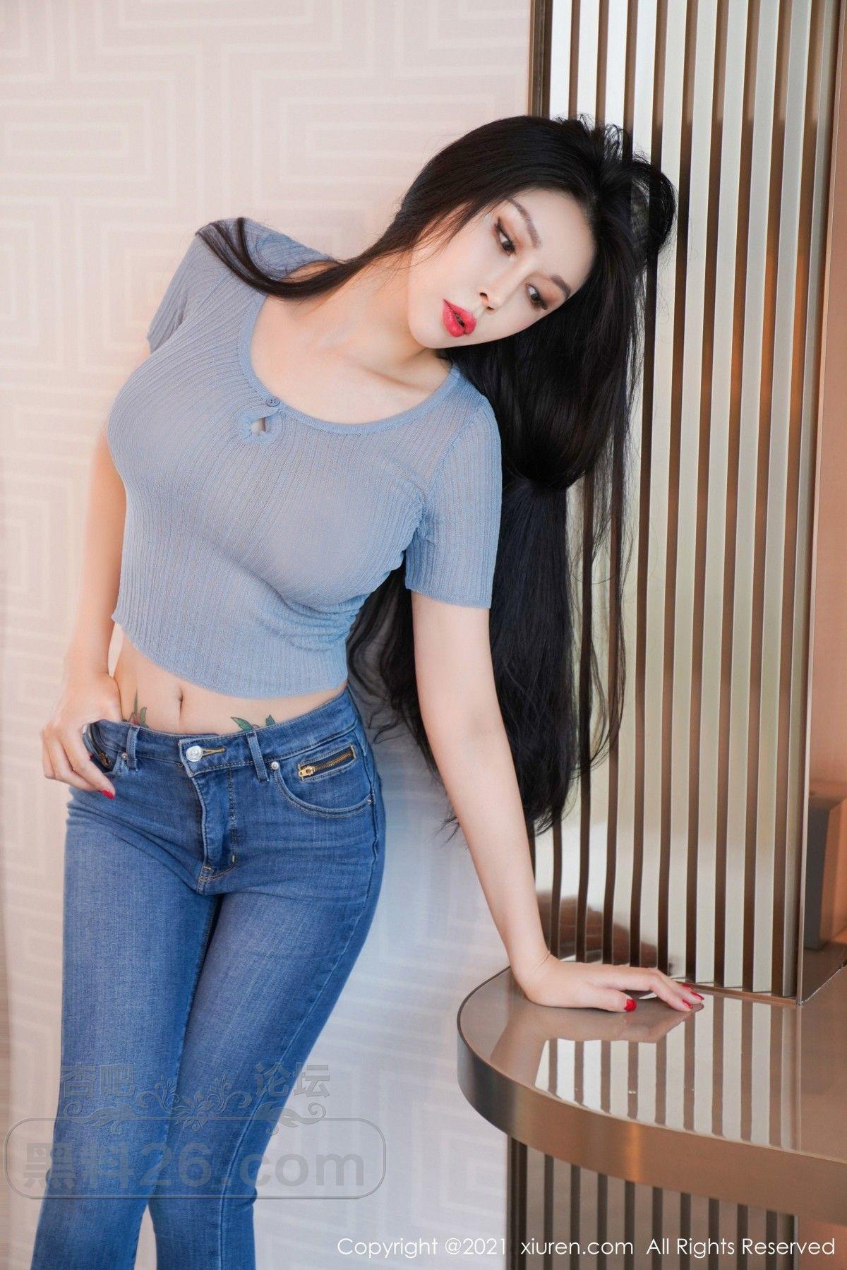 [美腿翘臀] 模特田冰冰私房轻透服饰配牛仔裤半撩露豪乳半球惹火诱惑写真【50P】 |
