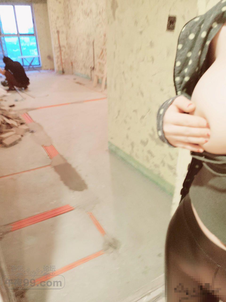 正在装修的新房里露出,边上还有干活工人【30P】