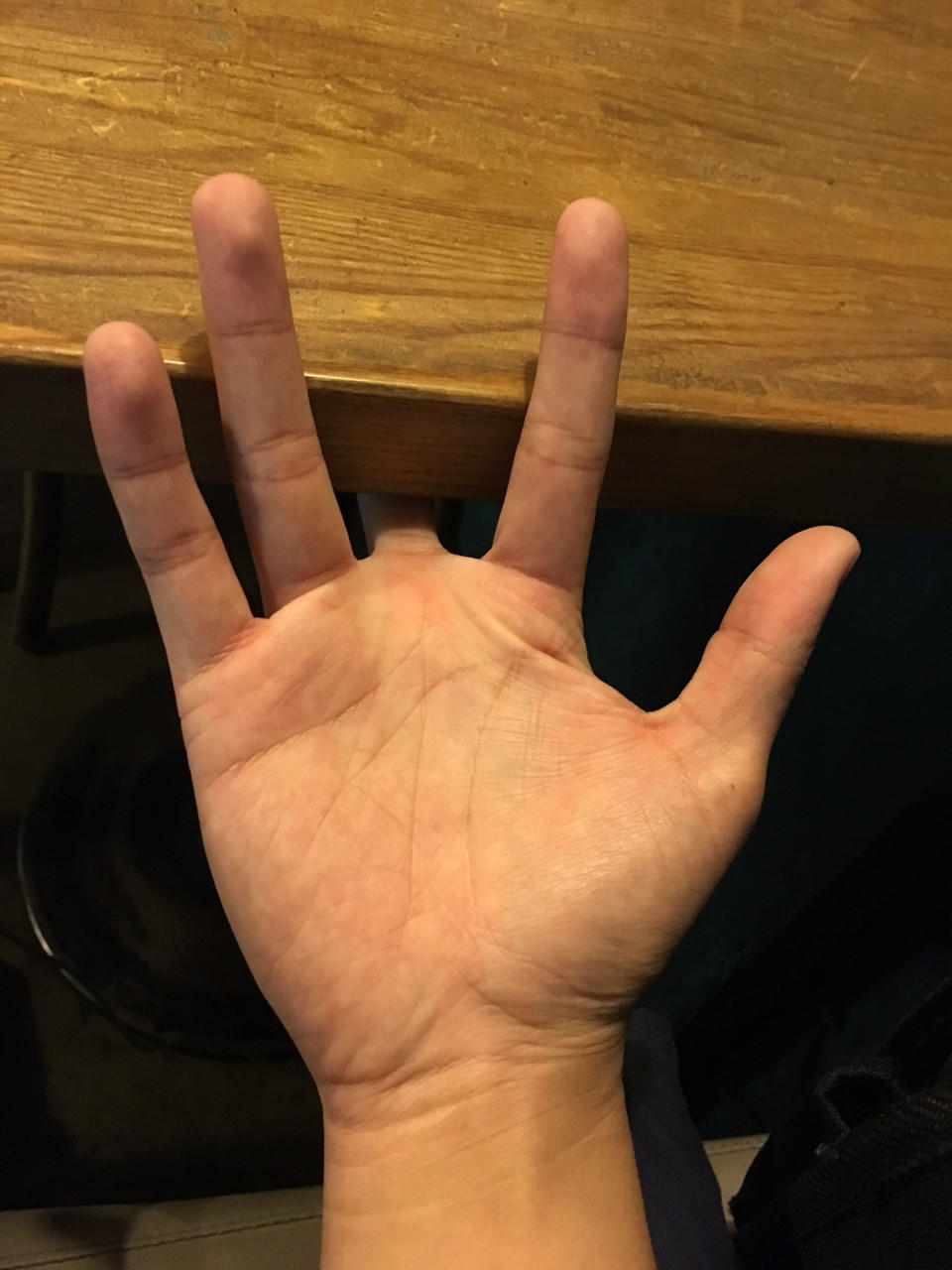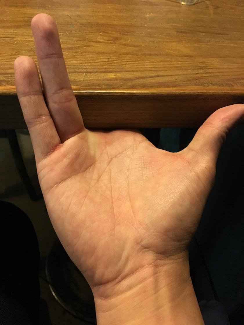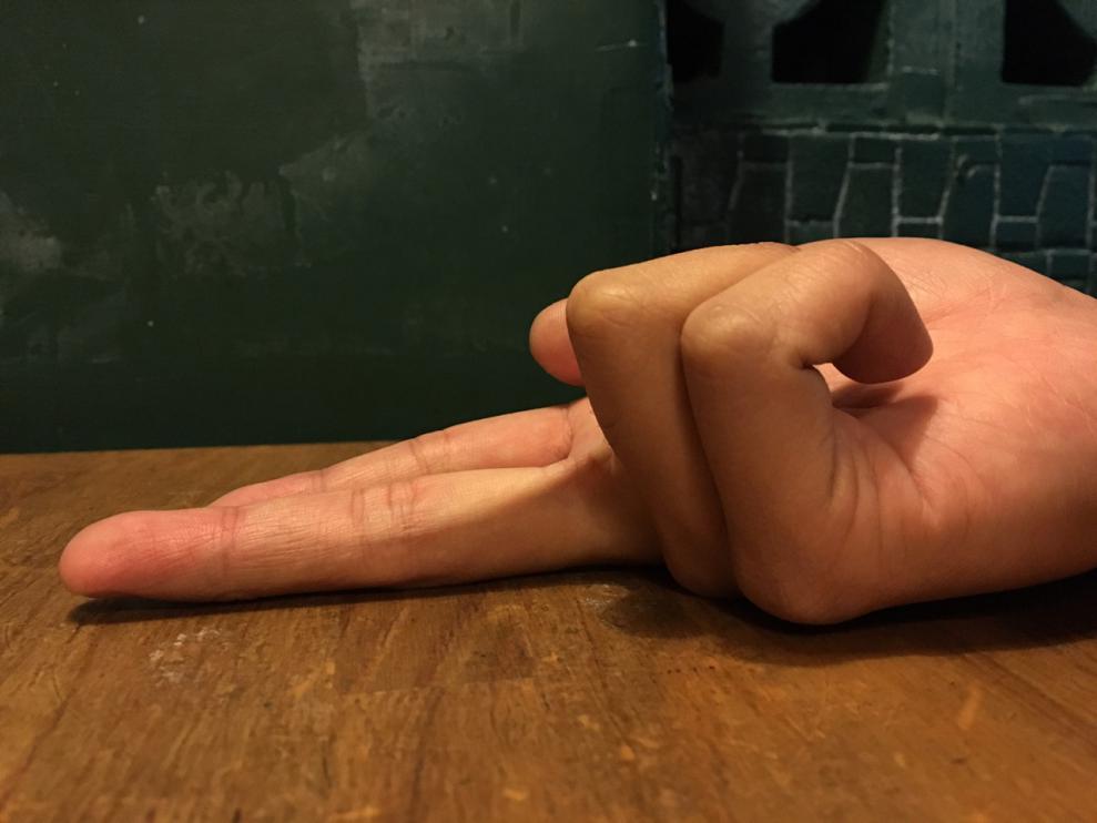 再来进入指法教学:首先,要先有健全的中指+食指其他指头就算没有也不要紧。再来,就是要有短短圆滑不伤人的指甲(大概是像这样)