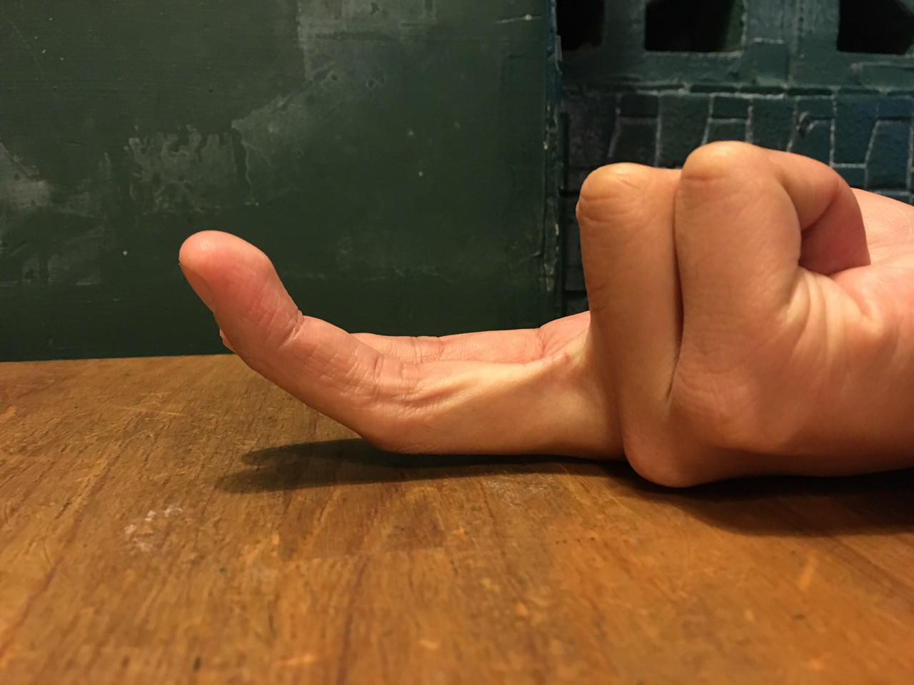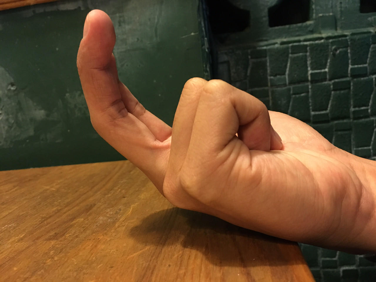 注意,手腕不是平放,是往下沉,感觉就像斜斜得往斜上方勾而最容易喷喷的姿势