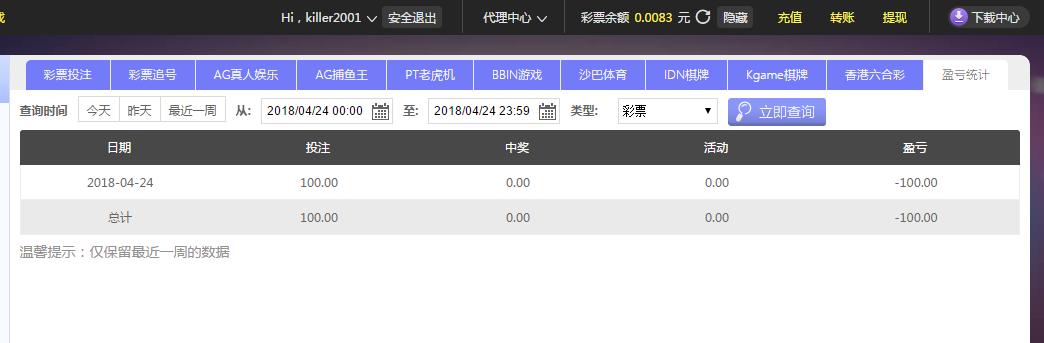 4月24日摩臣亏损100元 |